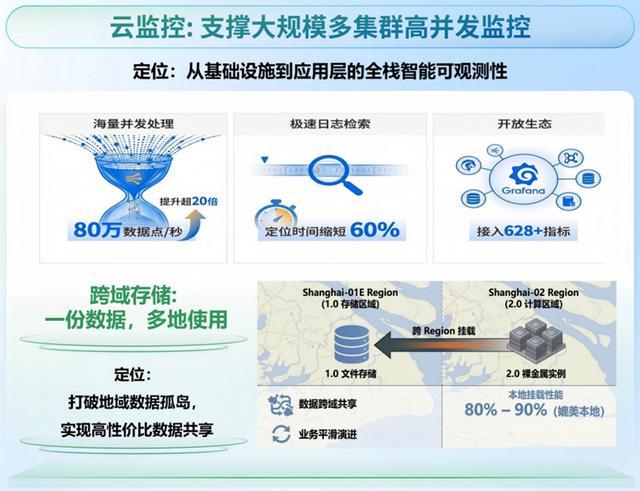 同时,通过跨地域数据挂载技术,实现“一份数据,多地使用”,在保证接近本地性能的前提下,打破数据孤岛。这不仅降低了数据流转成本,也为跨区域业务部署提供了基础支撑。