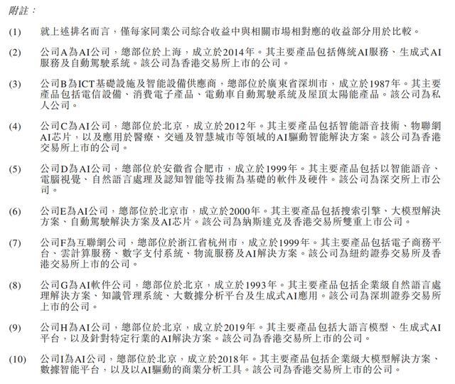 根据灼识咨询,按收入计算,中科闻歌在2024年中国企业级大模型驱动的决策智能服务提供商中排名第一,市场份额为11.4%;在2024年中国企业级大模型市场中排名第七,市场份额为2.4%。在这一市场中,其主要与商汤科技、华为、云知声、科大讯飞、百度、阿里巴巴、拓尔思、智谱和滴普科技等国内主流AI厂商展开竞争。