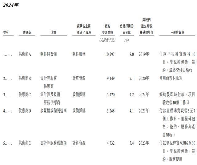在供应链侧,中科闻歌的业务依赖计算资源与基础设施能力。其主要采购包括云计算服务、硬件设备及商业软件三大类。