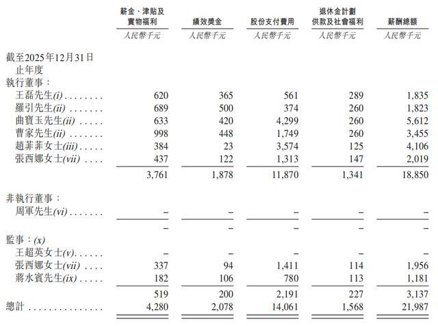 其中,2025年董事长王磊与CEO罗引薪酬分别为约183万元和182万元。