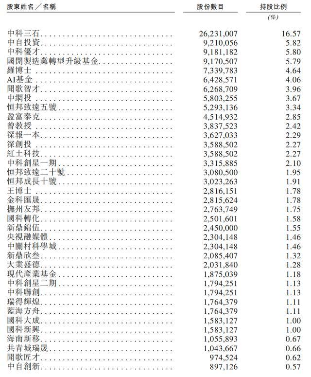 除中科院体系资金外,股东名单中还出现了中网投、深创投、红杉中国等机构投资者,以及中关村科学城、央视融媒体等产业与政府背景资金。