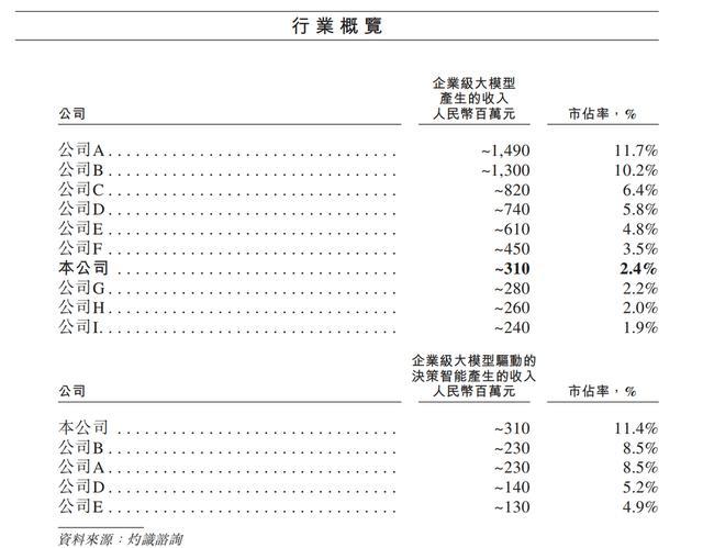 根据灼识咨询数据,按2024年收入计算,企业级大模型与决策智能市场前五大参与者合计市场份额为38.6%,集中度相对有限。
