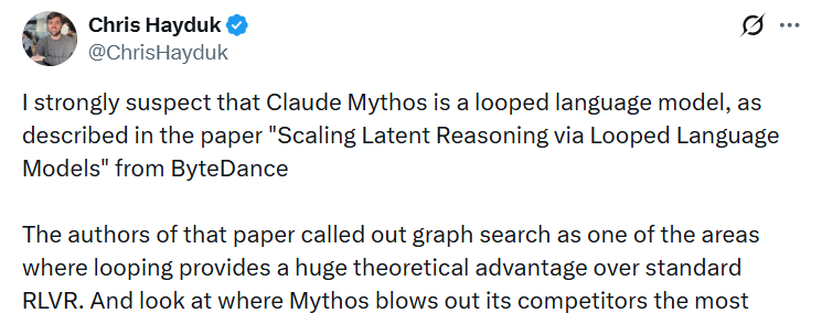 前Meta、现OpenAI的工程师Chris Hayduk直接捅破了这层窗户纸,并将矛头指向了一种创新的底层架构设计:循环语言模型(Looped Language Models)。