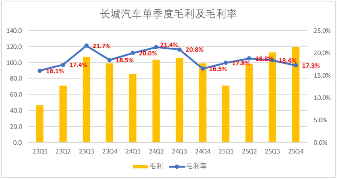 三重因素叠加,共同削弱了长城2025年的毛利表现。