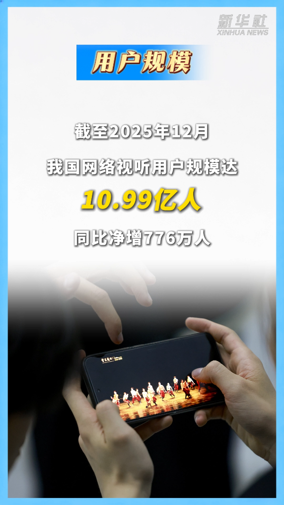 ■报告显示,截至2025年12月,我国网络视听用户规模达10.99亿人,同比净增776万人。
