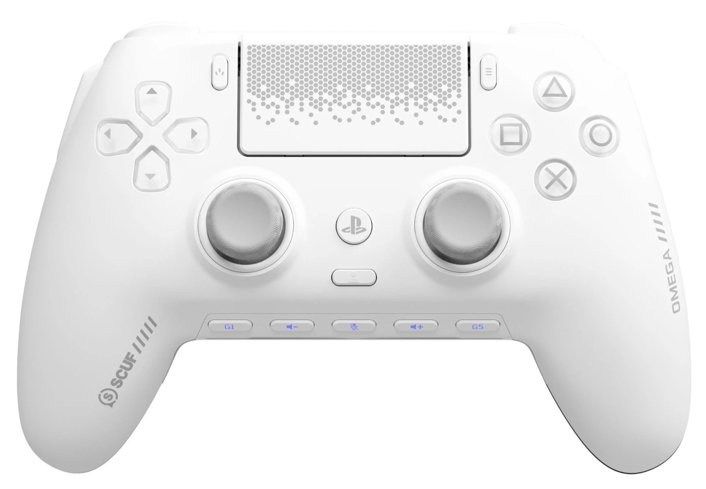 外观设计上,Omega 与 PC 端产品 Envision Pro 高度相似,但针对 PS5 平台做了关键调整。手柄加入了 DualSense 原生触控板,并支持主机端的电源管理设置。