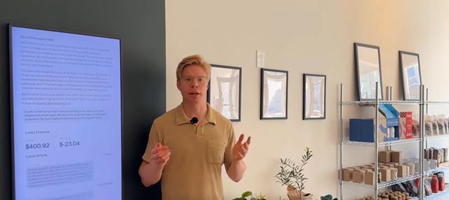 Andon Labs联合创始人阿克塞尔·巴克伦德(Axel Backlund)在门店介绍此次实验(图源:Andon Labs)