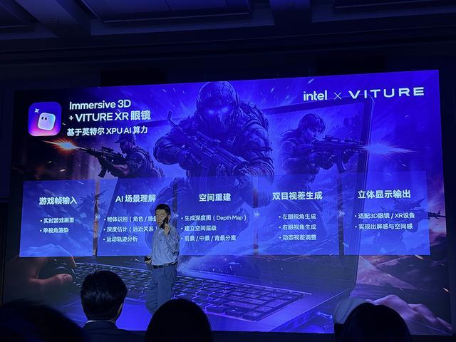 VITURE依托英特尔平台算力,实现智能2D转3D,可以将游戏立体化投射至XR眼镜,让玩家更加身临其境地沉浸在游戏世界中。