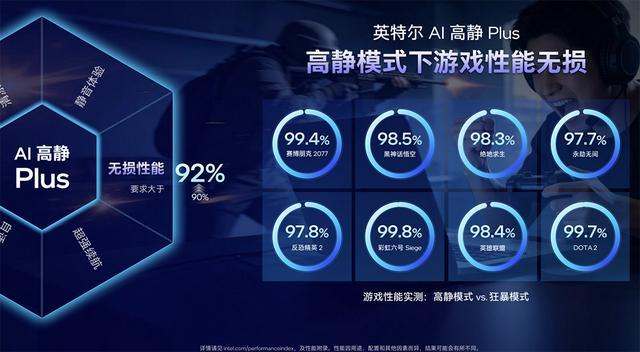 考虑到玩家在图书馆、咖啡厅、宿舍等真实场景下的核心痛点,英特尔在清凉舒适、静音体验、无损性能、超强续航、自适应易用、AI智能六大维度上进一步延伸,正式推出“AI高静Plus”全新标准。