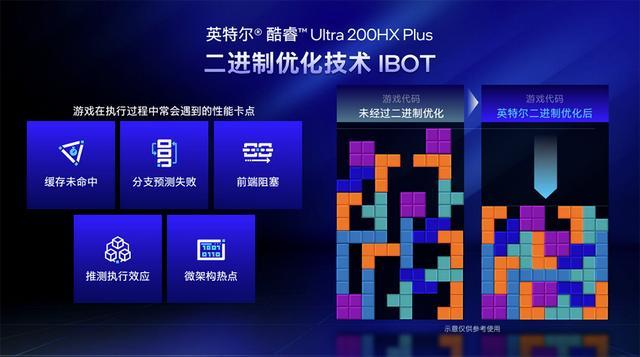 IBOT就是为了优化这些卡点而生,它采用了一种在内存内动态优化代码的方式,在游戏运行时,动态扫描CPU程序的核心卡点,然后把产生卡点的指令替换成解决性能卡点的指令,从而在软件层压榨出更多的性能。