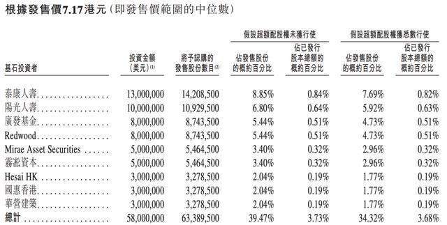 群核科技本次全球发售引入泰康人寿、阳光人寿、广发基金、Redwood、Mirae Asset、雾凇资本、Hesai HK、国惠香港、华营建筑等作为基石投资者。