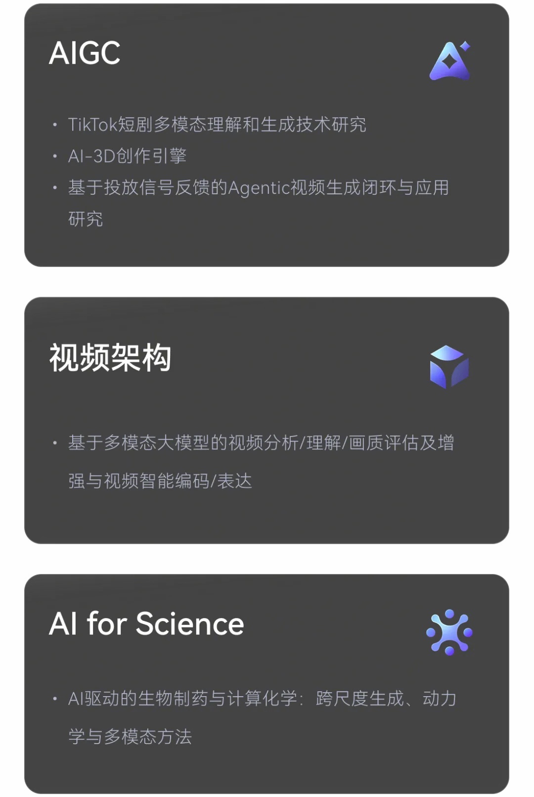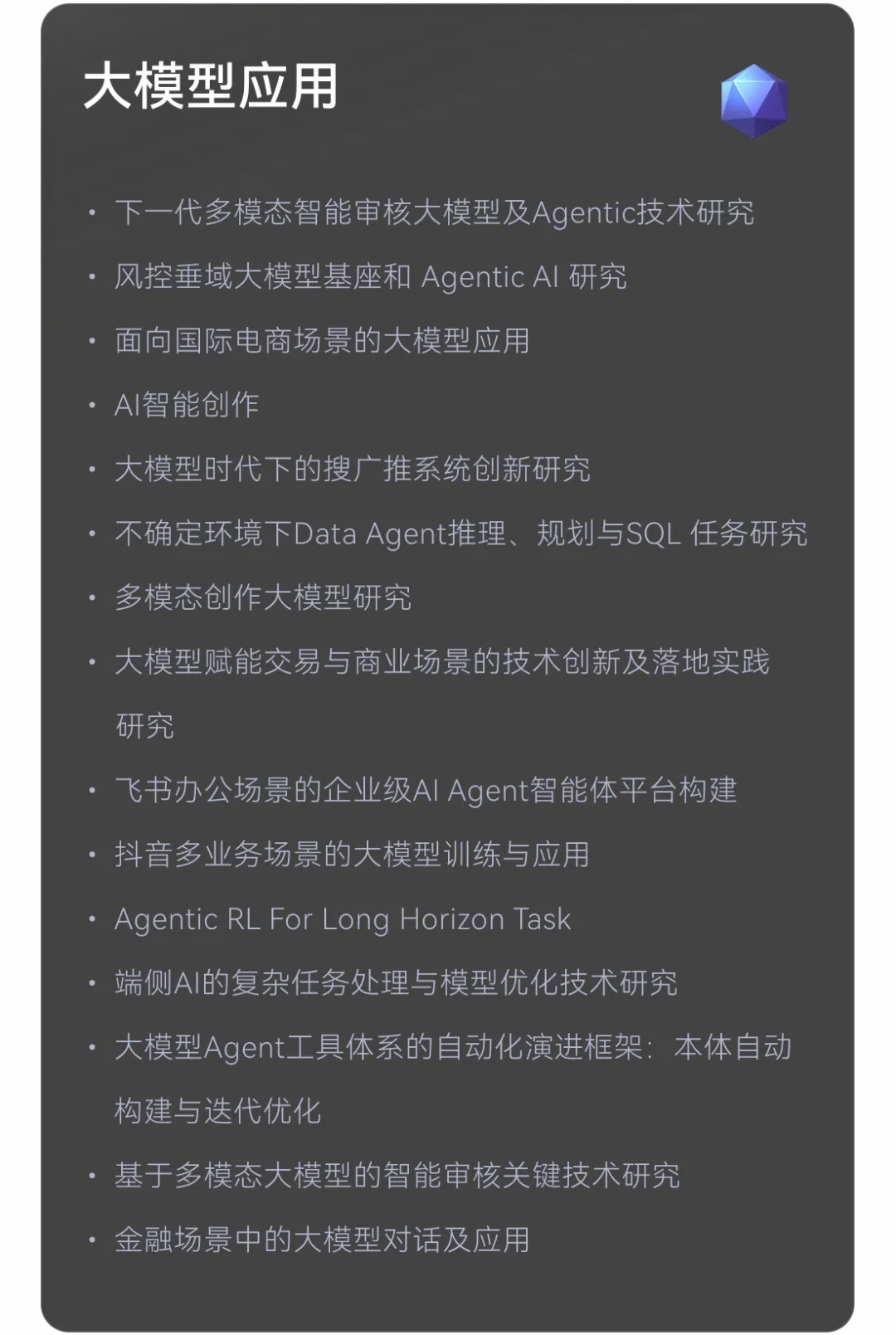 据介绍,前沿技术领域人才校招是字节跳动面向全球优秀技术人才推出的招聘项目,涵盖全职和实习生招聘,开放大模型应用、搜索 / 推荐 / 广告、计算机体系结构与系统优化、安全 / AI Safety、硬件、AI Coding、AIGC、视频架构、AI for Science 等多个技术领域,邀请大家一起挑战前沿技术难题。