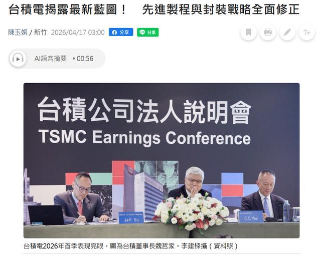 IT之家 4 月 17 日消息,据中国台湾地区媒体《电子时报》今天报道,台积电最近召开 2026 年第一季度财报法人说明会,介绍 1nm 及以下先进制程工艺规划情况。