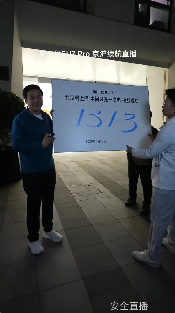 昨日上午 6 点半,小米创始人雷军如期开启新一代小米 SU7 从北京到上海的长途续航测试直播,中途仅充一次电。