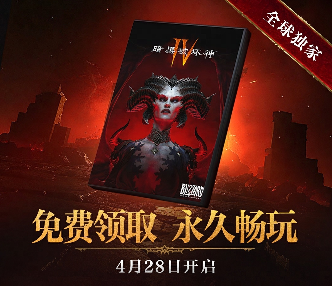 昨日,《暗黑破坏神 Ⅳ》国服官方宣布,游戏国服将开启限时免费领取,同时 4 月 28 日全新扩展包同步上线。