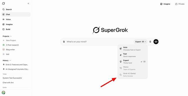 在核心模型层面,xAI 已悄然推送 Grok 4.3 Early Access 测试版,目前仅向 Grok Heavy 订阅用户开放。这一进展改变了 Grok Build 的技术路径:xAI 可能不再单独开发专用编程模型,而是直接依托 Grok 4.3 支撑编程功能。