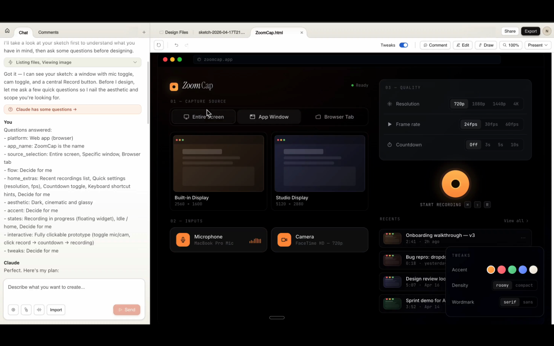 这是Anthropic Labs首个实验性产品,一个AI原生的视觉设计协作平台,由刚刚发布的旗舰模型Claude Opus 4.7驱动。