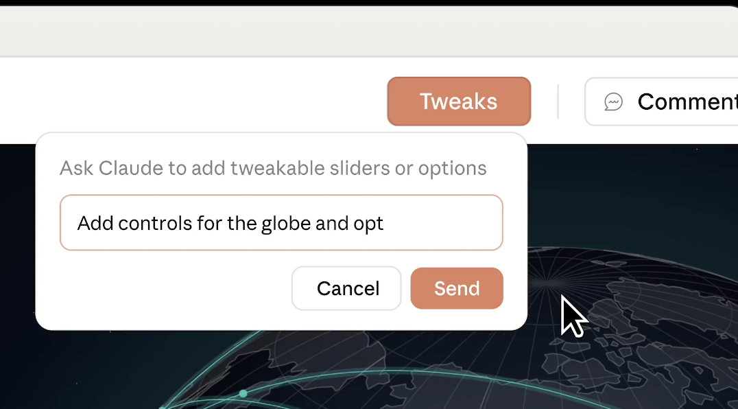 还可以像和人类协作时一样,在需要改动的组件上留一句评论,AI就会自动照着改动。