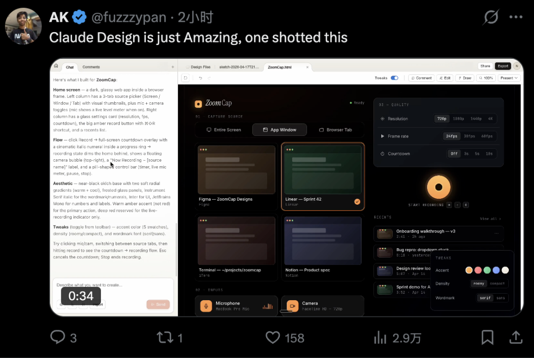 如果说Figma是“协作画布”,Canva是“模板工厂”,而Claude Design直接成为从想法到产品的AI流水线。
