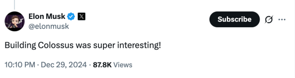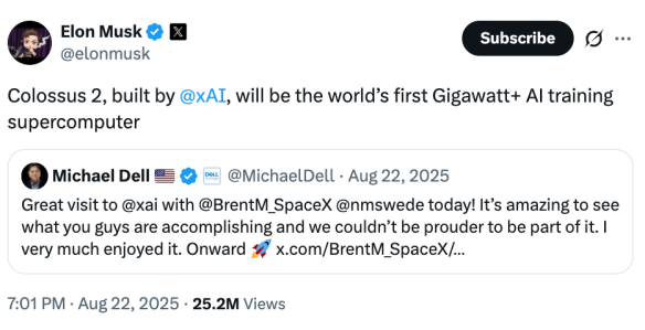 另一边,马斯克正在孟菲斯迅速布局。那一年,他公开宣布xAI要在孟菲斯建设“Gigafactory of Compute”——世界上最大的超级计算机集群,取名Colossus。