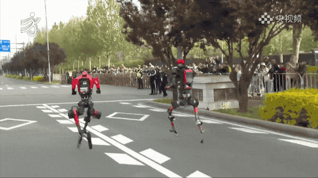 还有机器人跑到一半突然停止摆臂,单臂凌空,一副杨过独战天下的武侠范。