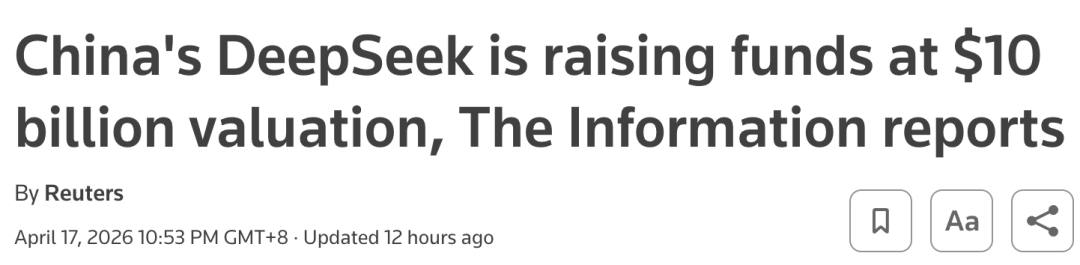100亿美元为估值的外部融资,相当于为DeepSeek的股权提供了市场化的定价基准。