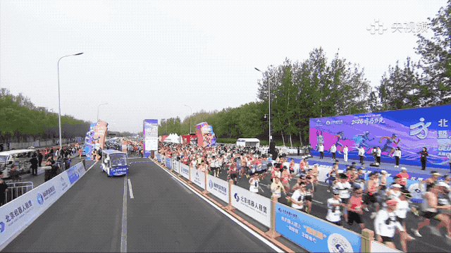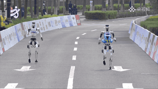 赛道上另一个名场面,真人跑者和机器人并肩竞速,结果机器人一个加速直接超过了人类选手。画面定格的那一刻,堪比一幅世界名画。