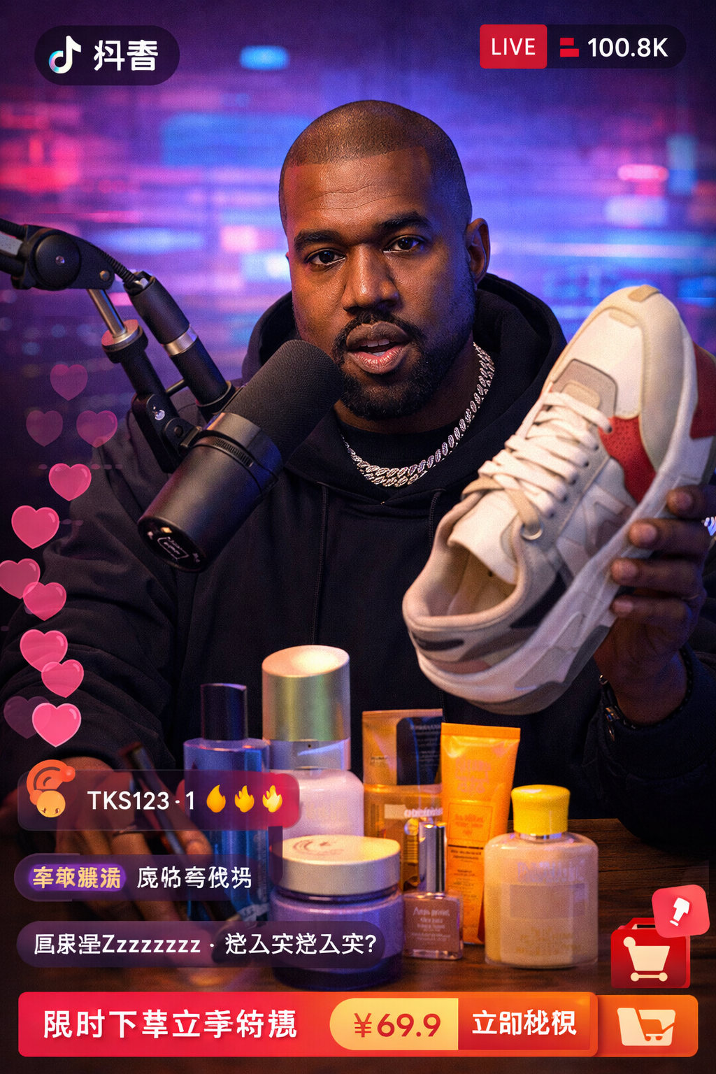 从来就没有什么抖音直播,也没人发过那些直播弹幕,这些游戏截图也都是AI生成的。