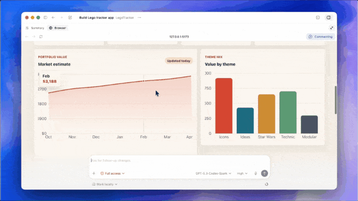 前几天,OpenAI将浏览器内置了,现在vibe-coding言出法随更加直观,不用单独再开个浏览器窗口。