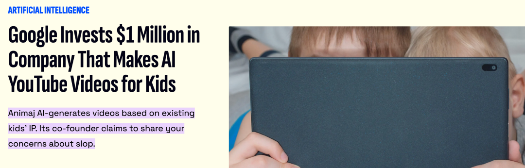 与此同时,谷歌还向一家专门为儿童制作 AI 视频内容的初创公司投资了 100 万美元。
