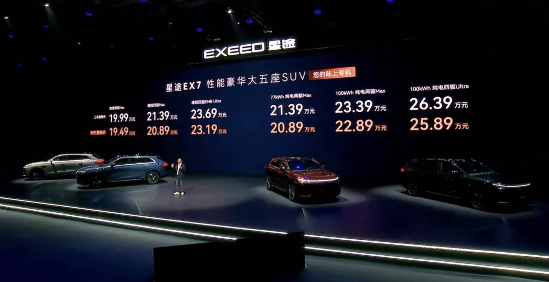 今晚,奇瑞星途品牌的全新车型——星途 EX7 正式上市。星途推出了纯电与增程两种动力共 6 款车型,官方指导价为 19.99 万至 26.39 万元。