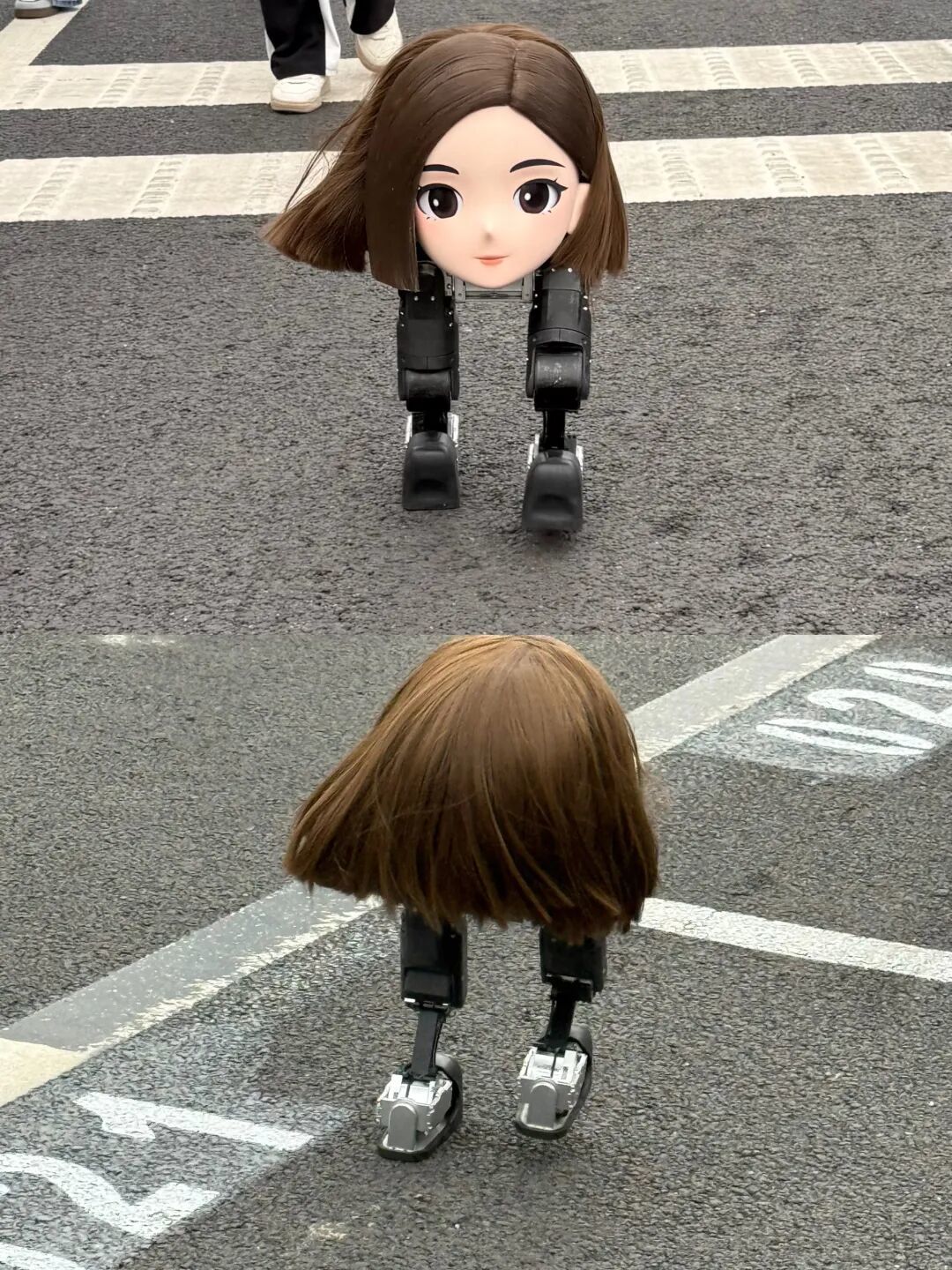 一名抖音博主自制的「豆包」人形机器人同样成为赛场焦点——圆脑袋、标志性笑脸、短腿小碎步,赛前还做了拉伸动作,相关视频在社交媒体上迅速走红。该机器人属遥控操作组,由博主在跟随车内进行操控。