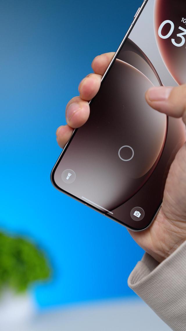 设计美学上,16GB+512GB绒砂钛版本采用微米级绒砂工艺,玻璃后盖呈现金属光泽的同时,触感如丝绒般细腻,彻底告别指纹沾染问题。机身采用超大弧度边框设计,224克重量分布均匀,长时间握持无头重脚轻感。矩形镜头模组通过冷雕工艺与背板无缝衔接,边缘铝合金高亮装饰圈随光线变化呈现冷冽银与温柔金的渐变效果,既凸显精致感又视觉减薄。