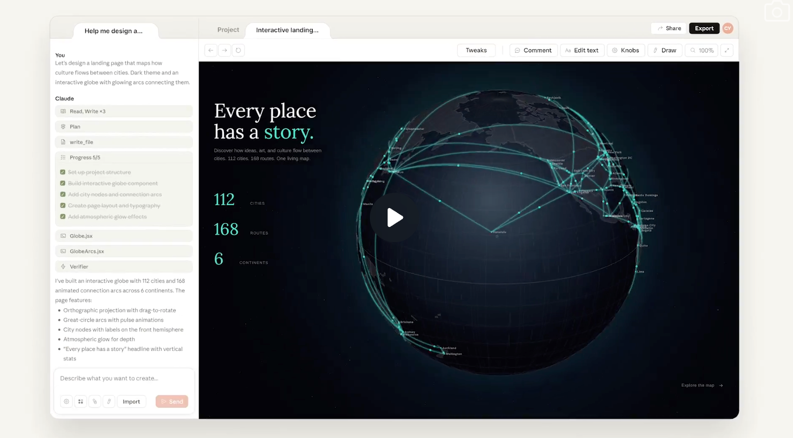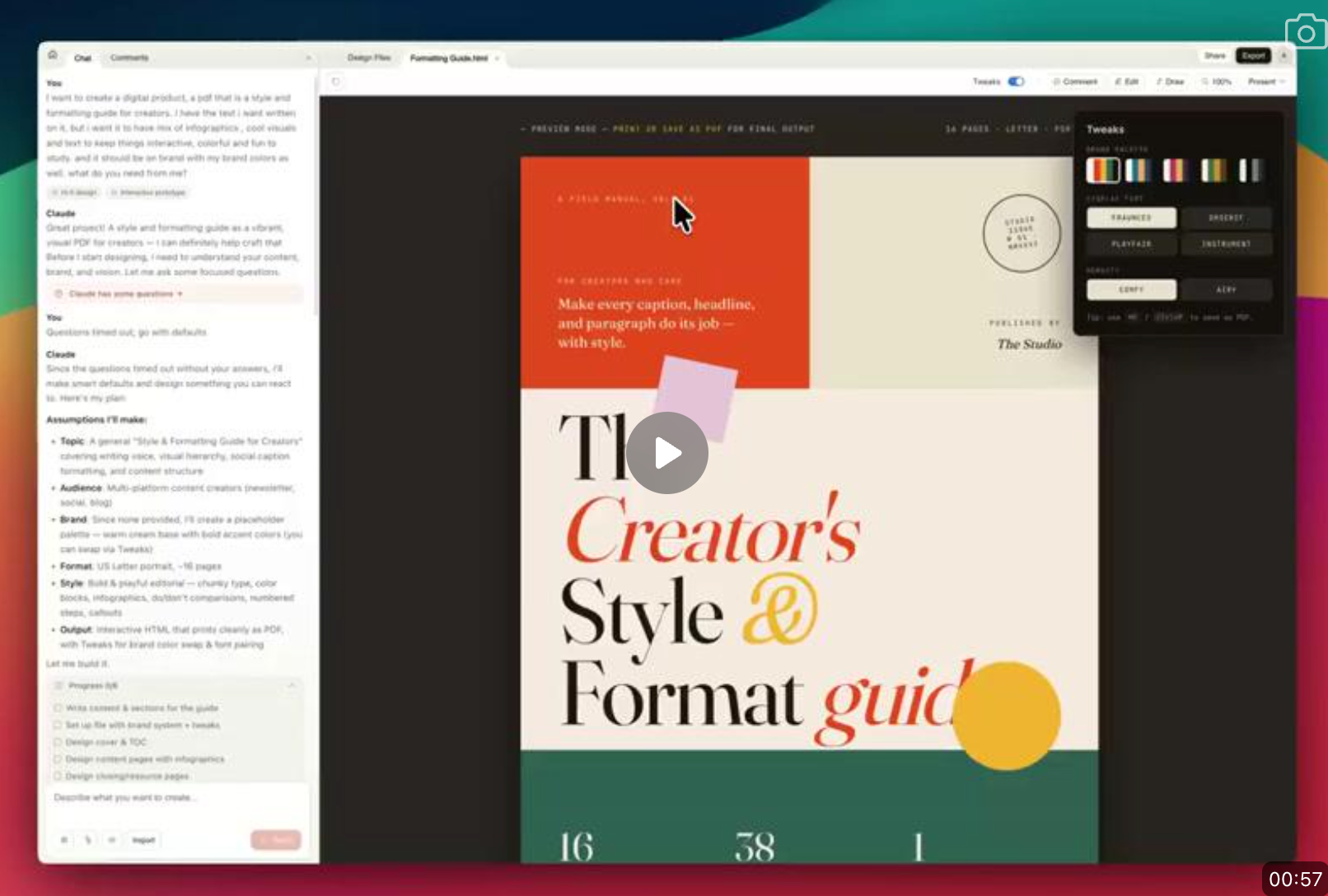 让 Claude 为我们的想法制作视频演示。Claude Design 几乎可以做到我们能想到的任何事情,它更像 Claude Code,而不是一个基于画布的设计工具。