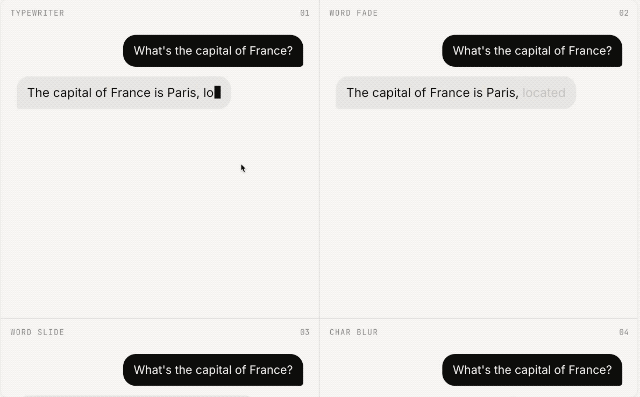 用一句提示词,Claude Design 就能给我们设计打字机、单词渐隐、单词滑入、字符模糊、点转文字、打乱、交错下落、上升进入、字符弹出、加粗进入、倾斜进入共 11 种文本流格式。