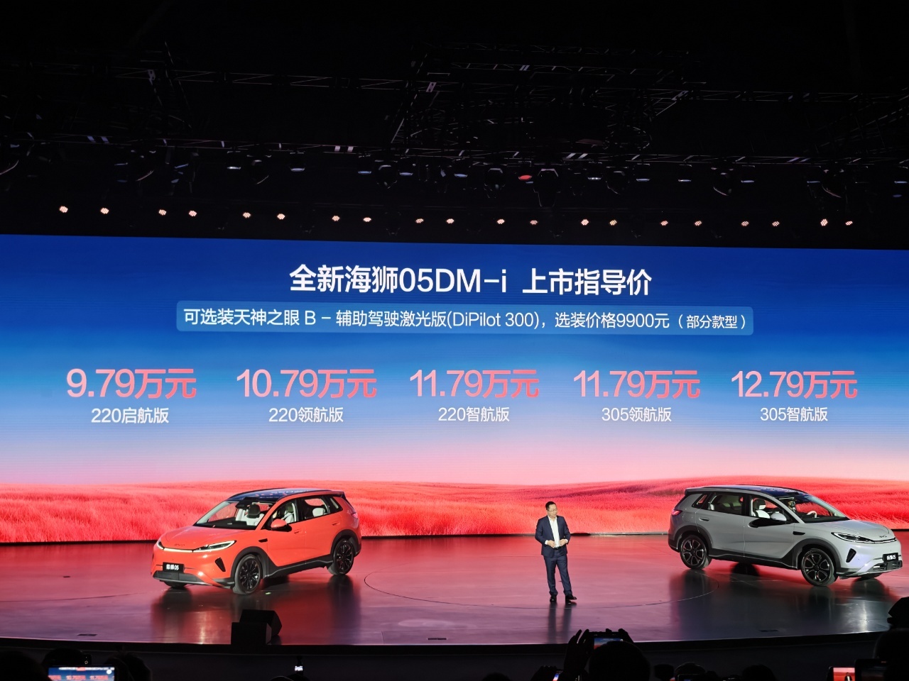 凤凰网科技讯 4月20日,比亚迪全新海狮05“双狮”系列今晚正式上市,涵盖DM-i插混版和EV纯电版两种动力形式,起售价为9.79万元。