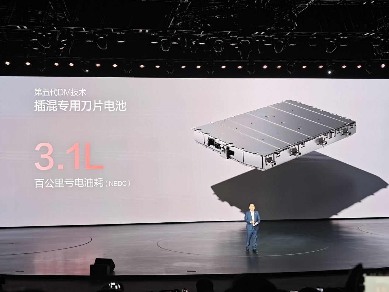 海狮05 DM-i搭载第五代DM技术插混专用刀片电池,NEDC工况百公里亏电油耗3.1升,满油满电综合续航2105公里,最高纯电续航305公里。