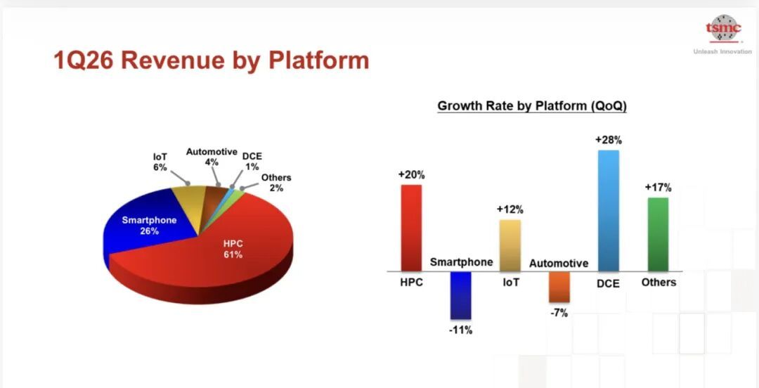 与之形成鲜明对比,智能手机芯片作为台积电长期基本盘显著降温,本季度收入占比降至26%,季环比下滑11%,这并非短期季节性调整,而是不可逆的结构性位移。在先进制程产能刚性、3纳米产线投资巨大的背景下,台积电已从“接单生产”转向主动筛选客户。