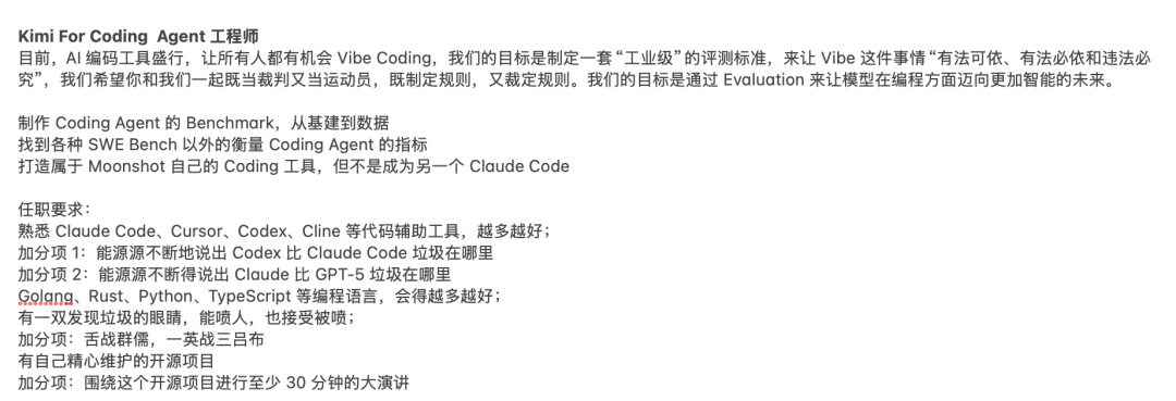 更有意思的是,3月份月之暗面招Coding agent工程师时,更是打出“不限学历”的旗号。