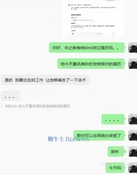 他表示,自己在使用Kimi时,手滑粘贴错了一张图,Kimi先是输出了一段无关的工程学文字,随后直接返回了一份包含姓名、电话、邮箱等真实信息的简历,疑似为其他用户上传的简历被系统错误发送。