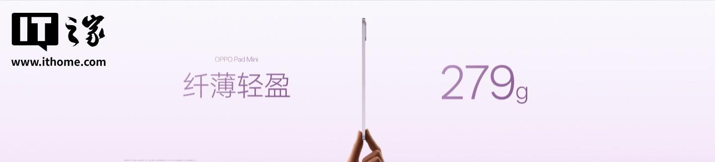IT之家从发布会获悉,OPPO Pad Mini 平板重 279g,机身厚度 5.39mm,提供深空灰、薄荷青、莫奈紫三款配色。
