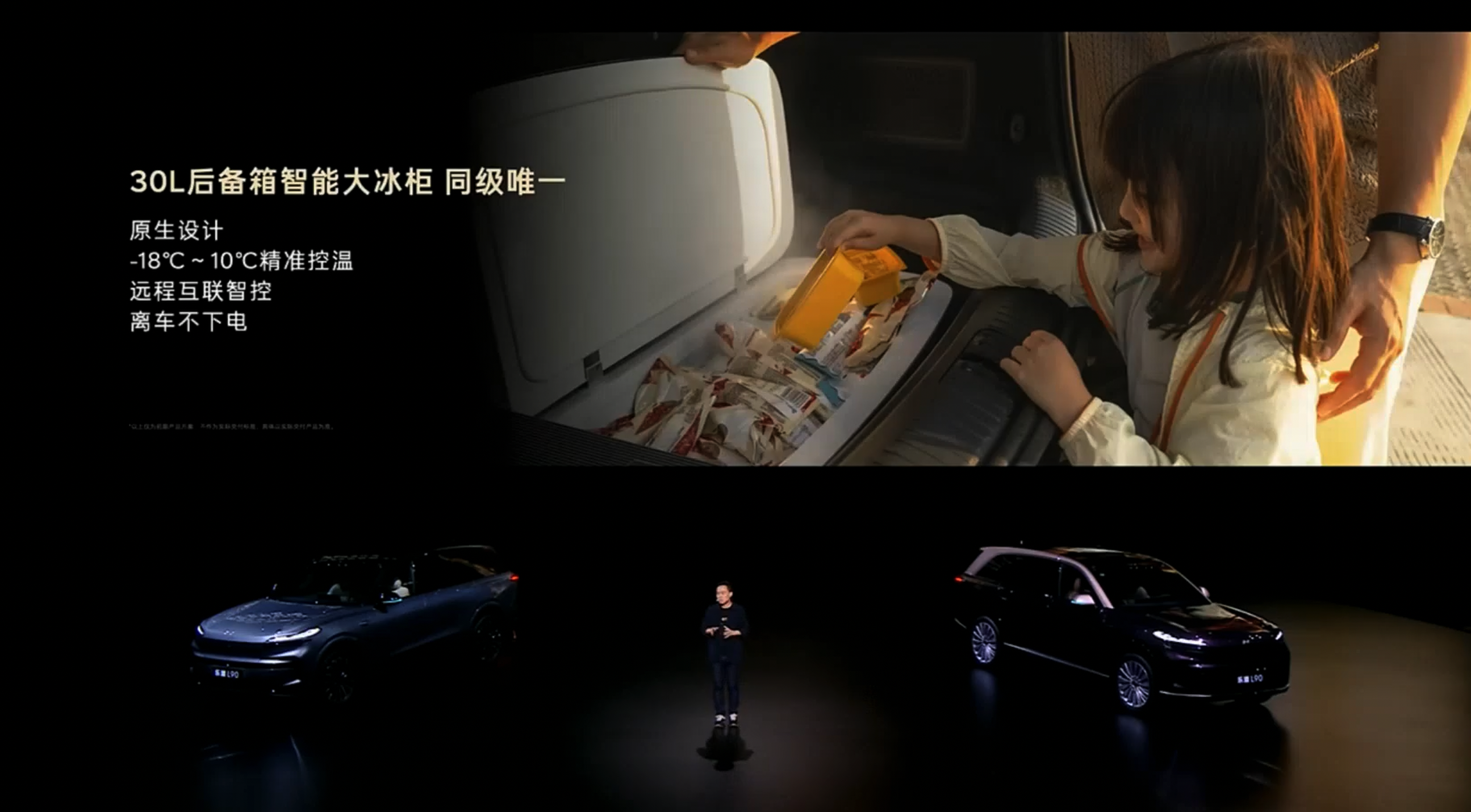 同时为了为了满足家庭出行的食材保鲜需求,新车在后备箱位置配备了一台容量达到 30 升的智能冰柜。这台冰柜的制温范围非常宽泛,可以在零下 18 度到零上 10 度之间自由调节,并且支持手机远程控制以及离车后持续不断电工作。