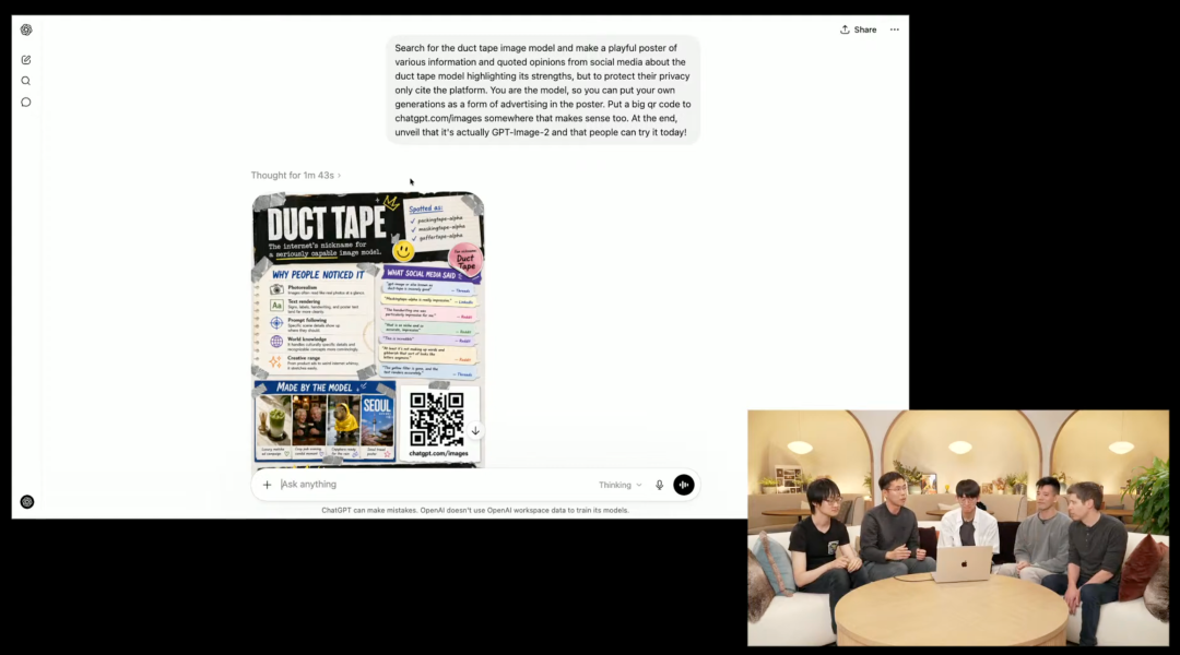 团队透露,几天前在Arena盲测的「DuckTape」就是今天的Images 2.0。