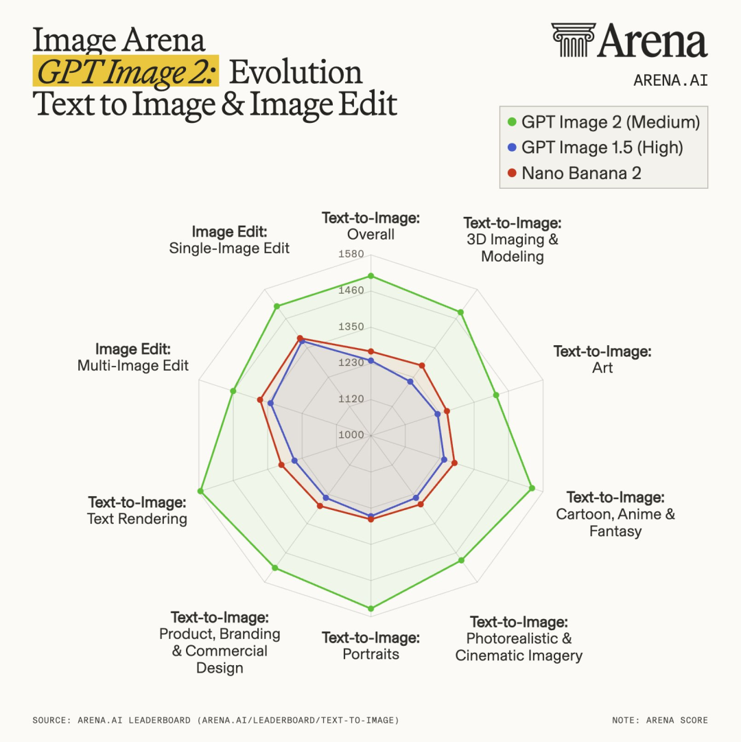 在Arena最新榜单中,Images 2.0一骑绝尘,登顶全球AI生图王座。实力暴击谷歌Nano Banana 2/Pro版本,领先242分。