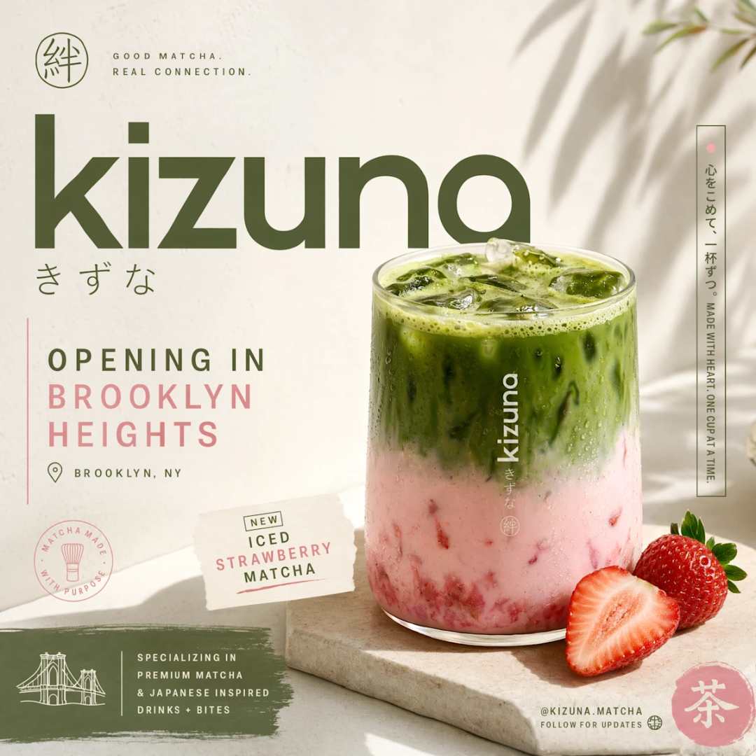 官方Demo展示了一家布鲁克林抹茶店「kizuki」的广告素材,冰镇草莓抹茶在阳光下的画面,街头服饰美学搭配日式极简,四种社交平台尺寸一步到位。