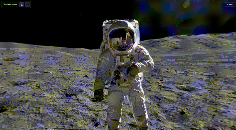 把ChatGPT生成的图片扔进全景查看器,便可以实现如下的效果,太阳的位置、影子的方向,以及一些细节全部清晰可见。