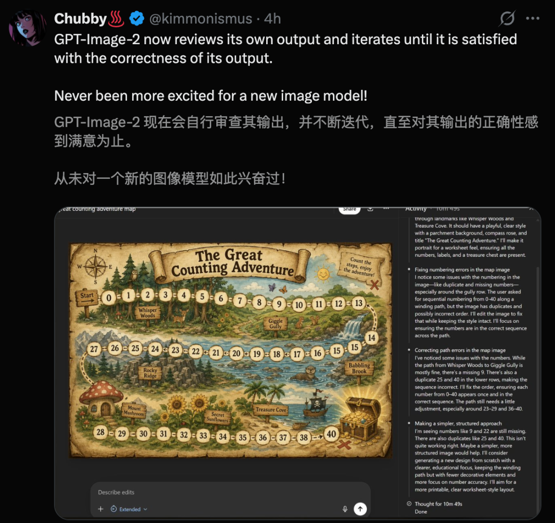 当在ChatGPT中选择思考模型时,Images 2.0不再只是一个「你说我画」的渲染器,而是变成了一个视觉思考伙伴。