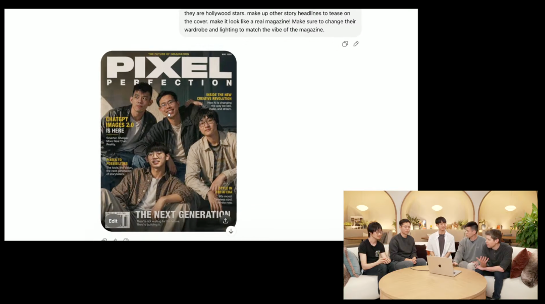 上传一张四人合照,ChatGPT直出一张杂志封面,在页面设计、文字排版都非常讲究。