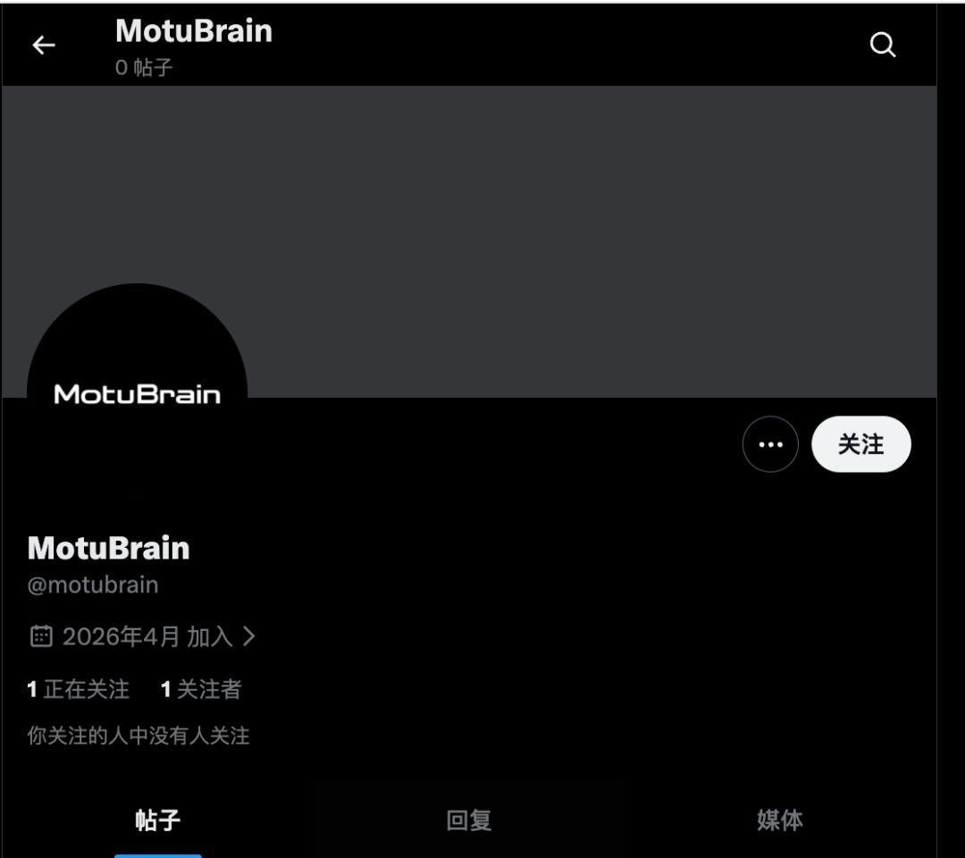 简单搜索了一下,目前网上还未找到任何有关 MotuBrain 的信息,不过我们发现了这个本月刚刚注册的 X 账号。