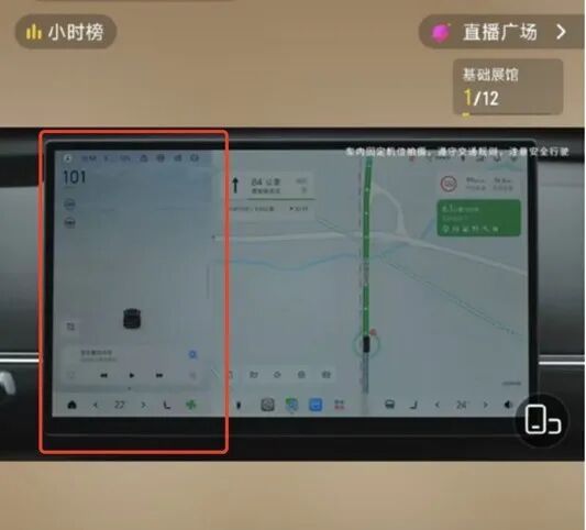 直播画面显示,当时车辆正在高速路段行驶,中控屏上仅显示车辆模型,车道线、其他车辆等关键信息全部消失。
